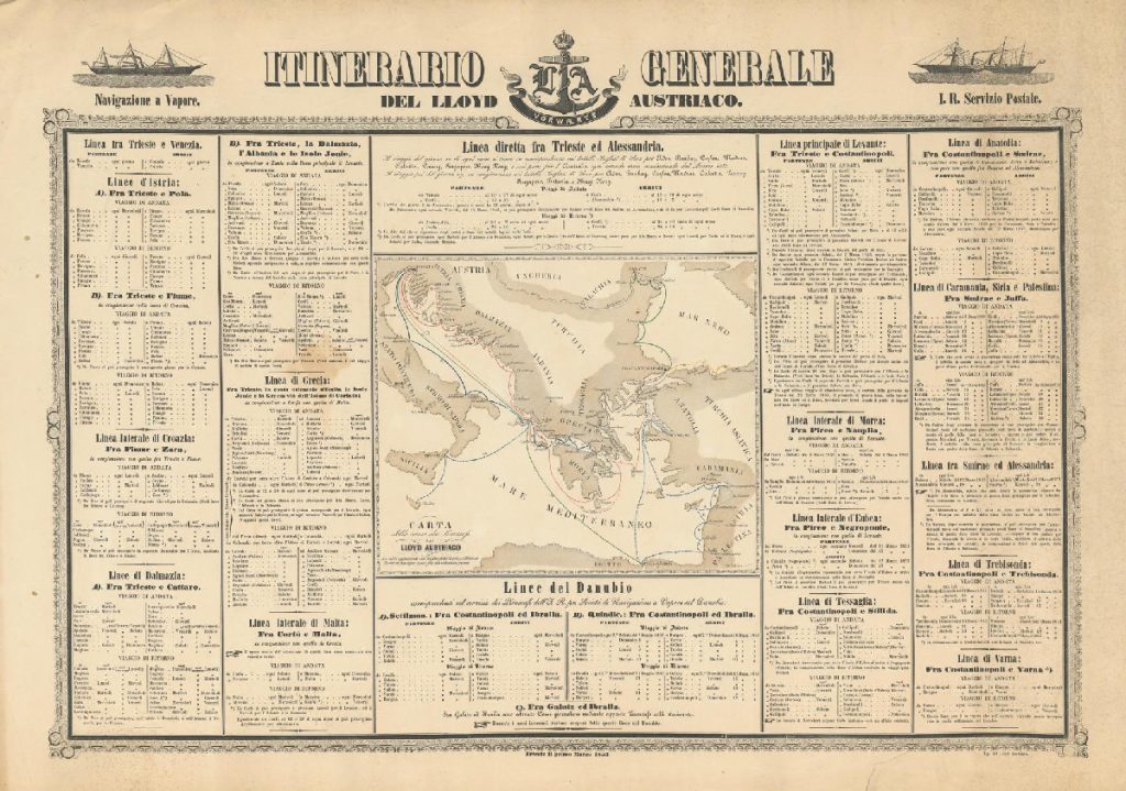 Nel 1833 un gruppo di uomini d’affari dà vita al Lloyd Austriaco per raccogliere e diffondere informazioni commerciali e marittime e nel 1836 nasce la Compagnia di Navigazione a Vapore del Lloyd Austriaco.